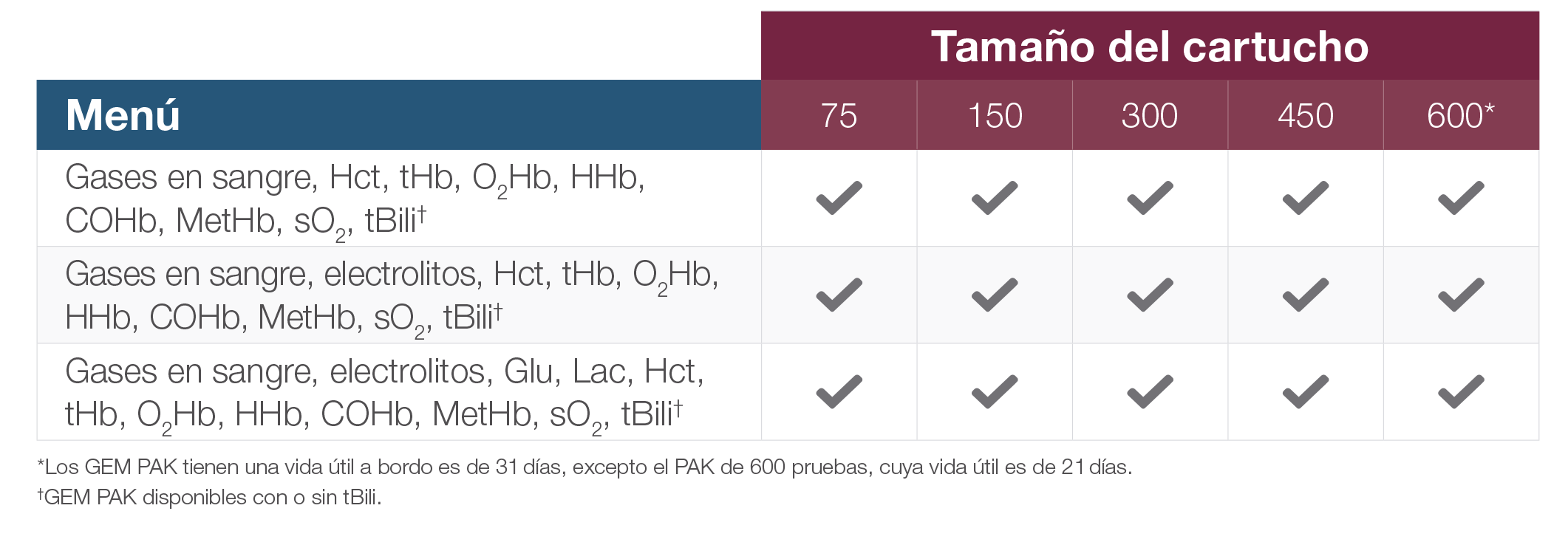 Verificaciones de la estabilidad de PCS: Verifica la estabilidad de PCS y la integridad de GEM PAK durante la vida útil del cartucho.